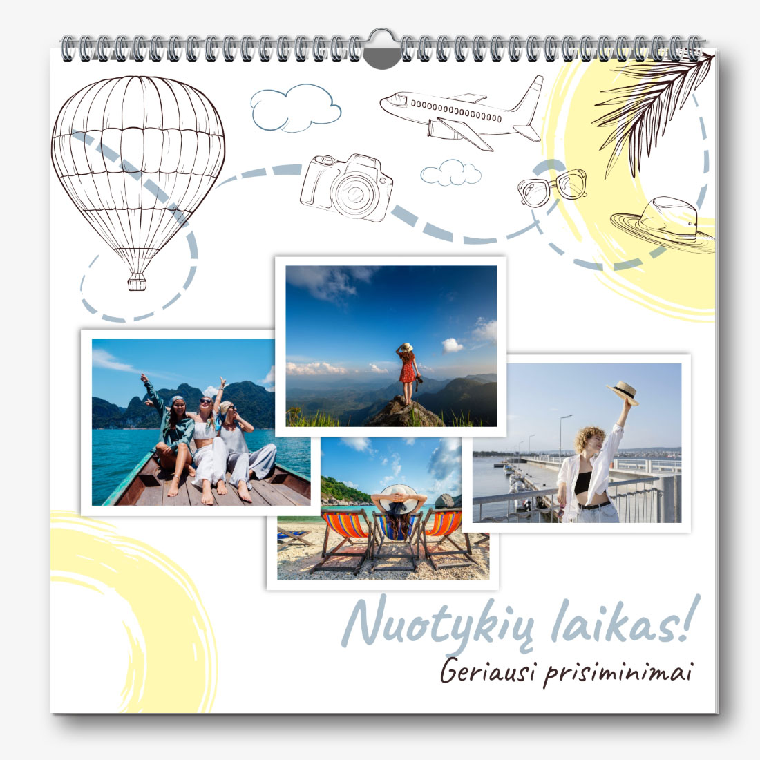 Kalendoriaus šablonas su kelionių nuotraukomis