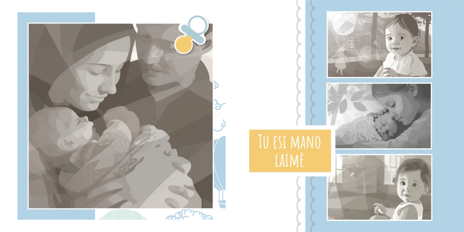 Ir pridėti 3 mm už užlaidas. Pateikti JPG failus sunumeruotus, 300 DPI.